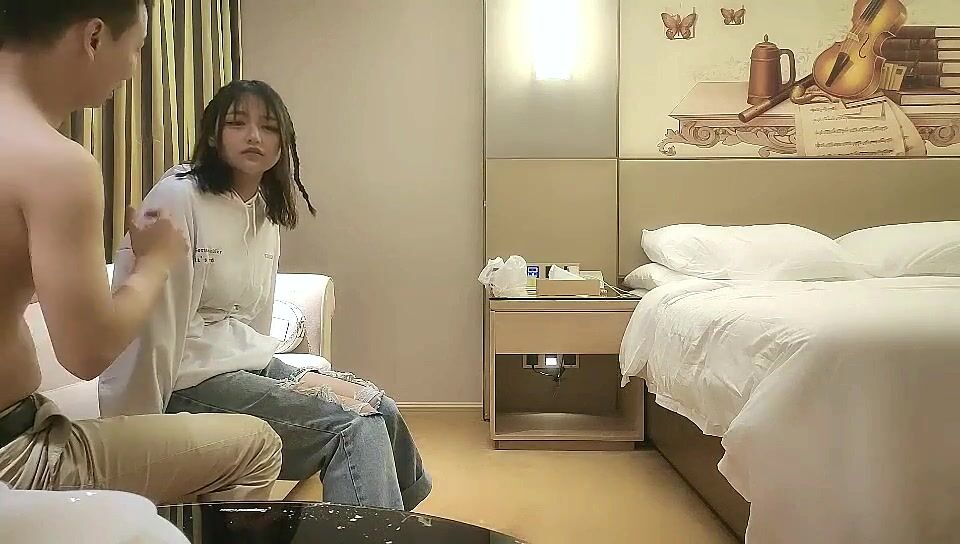 民宿酒店服務員貓眼偷拍大學生情侶做愛 小哥操完女孩仔細觀看AV模仿加藤鷹的金手指給女友弄潮吹